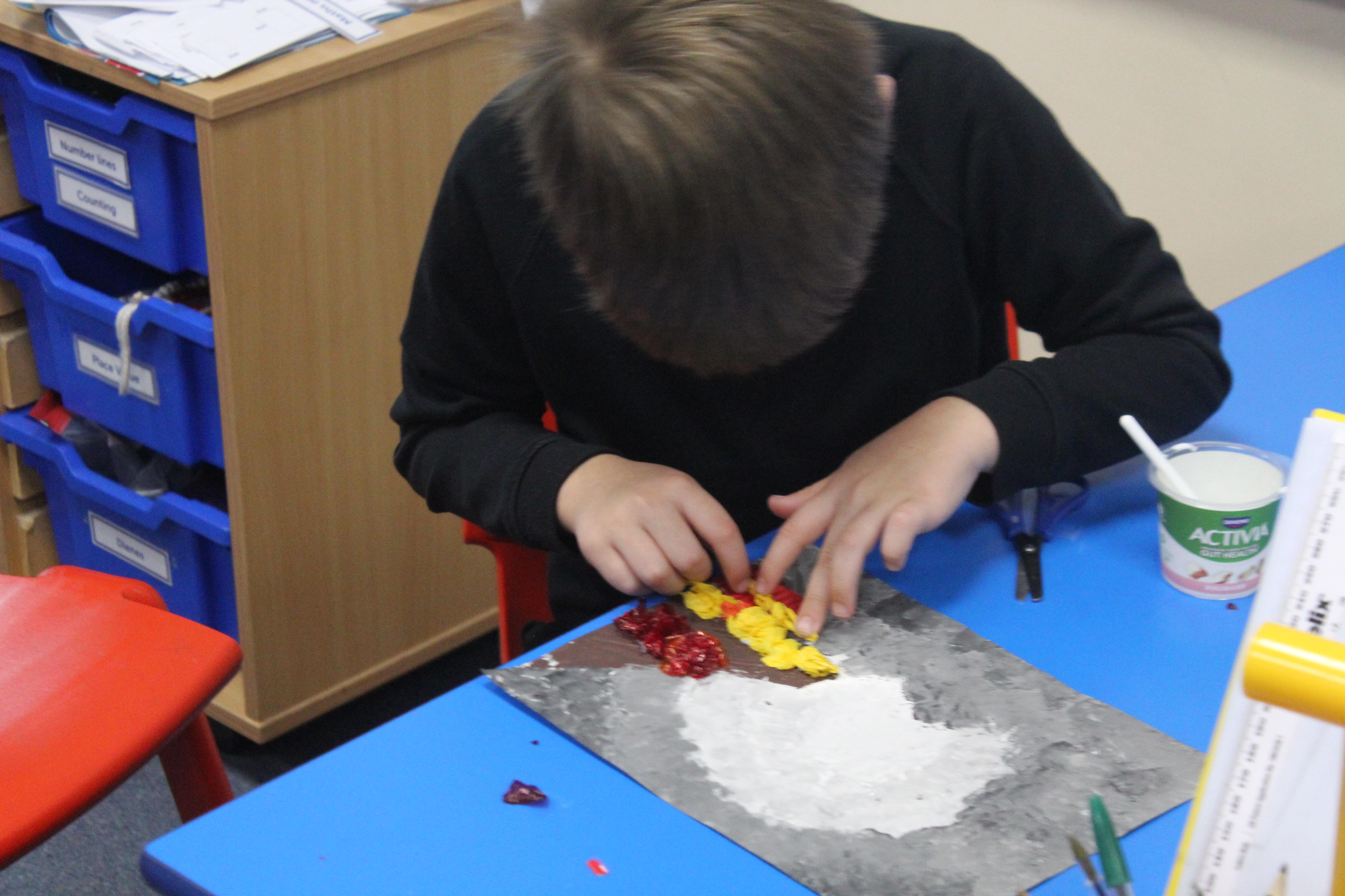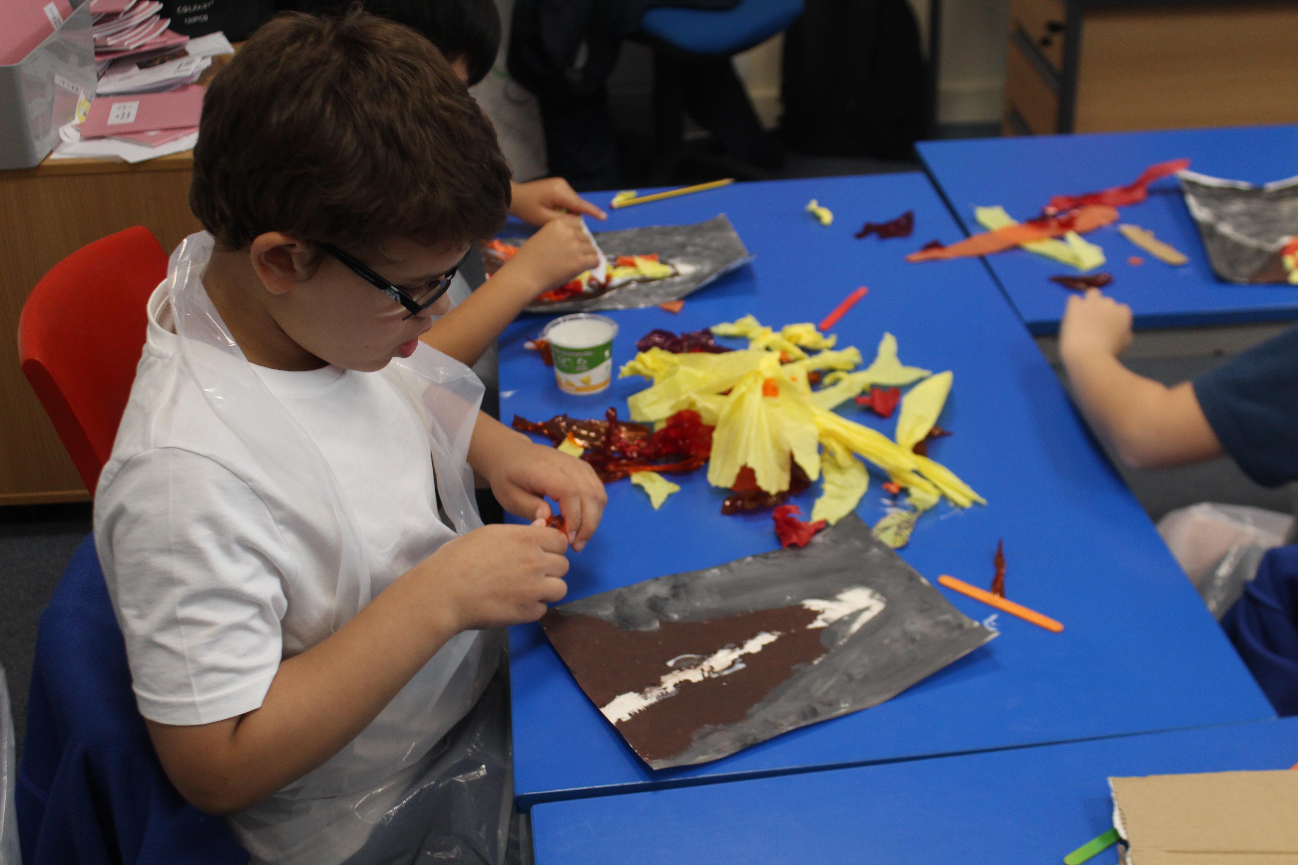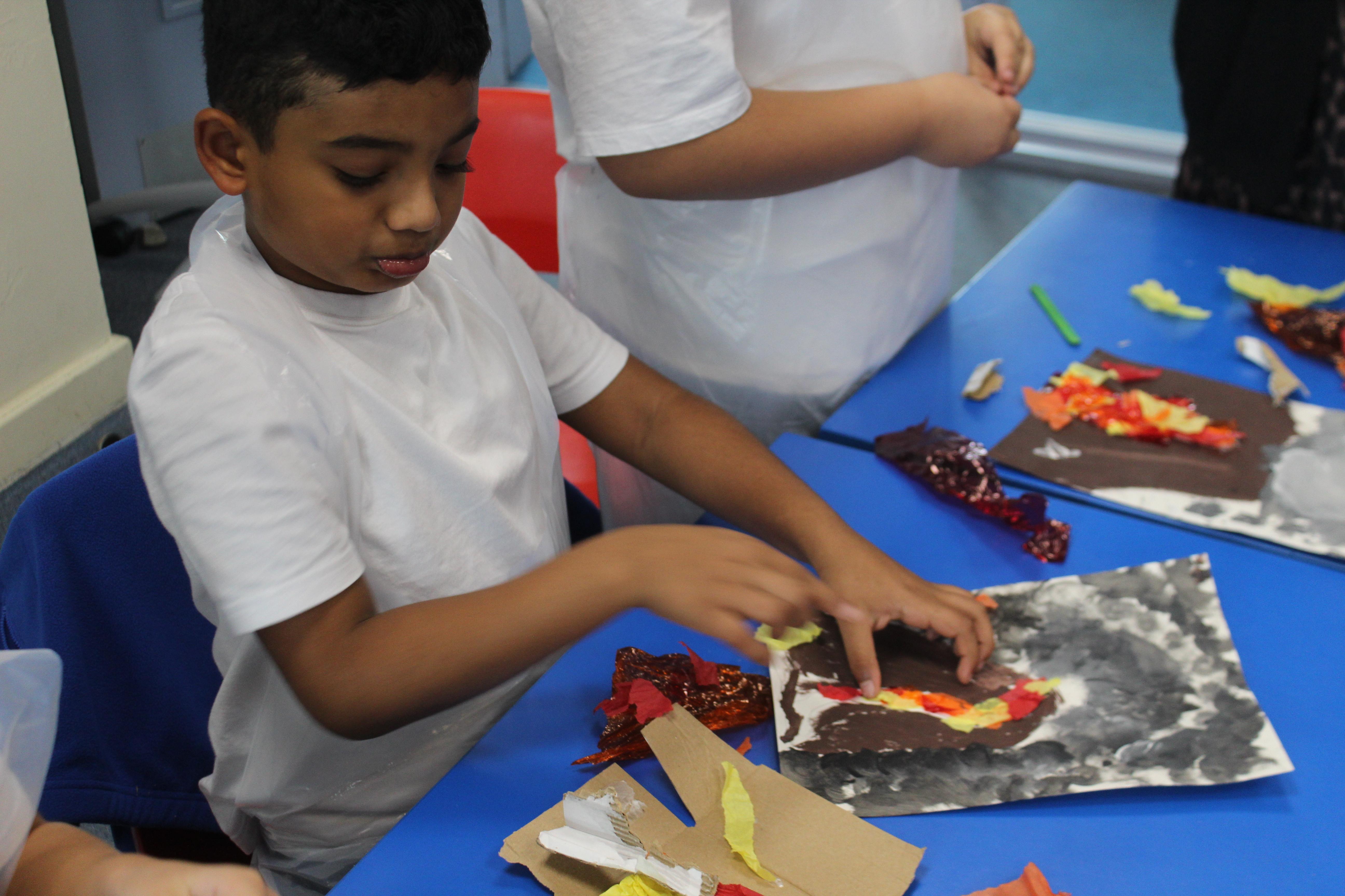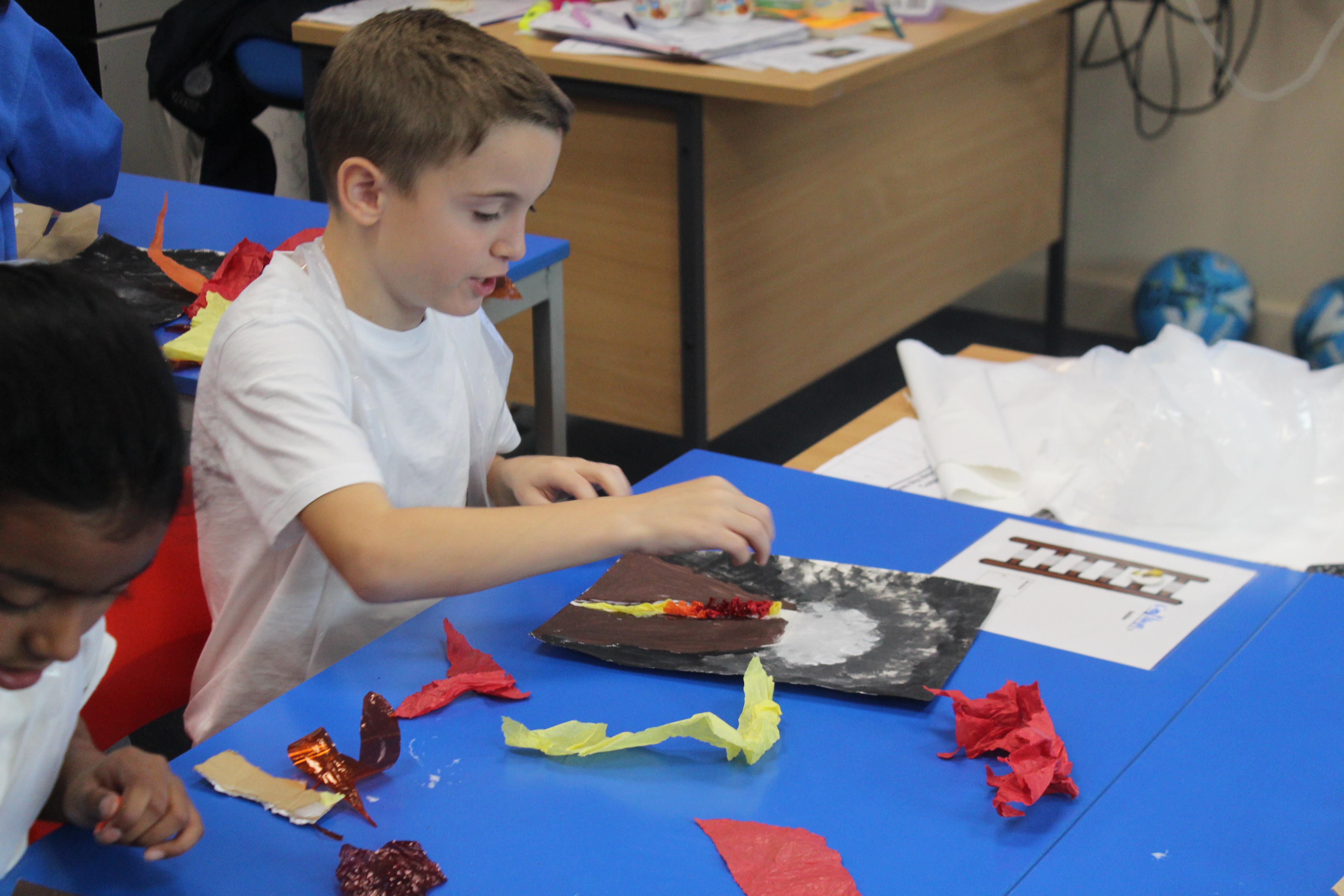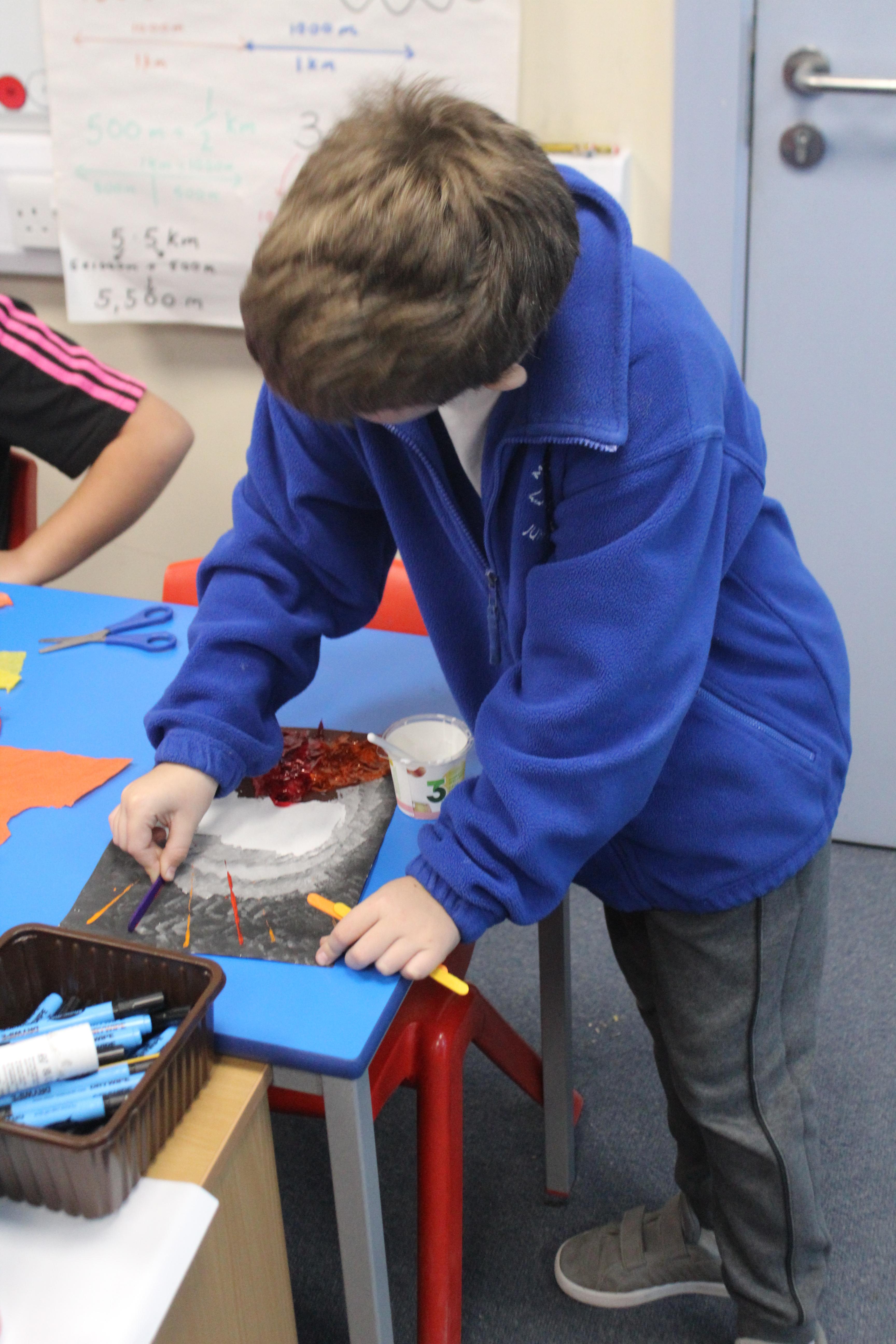 Year 4 students have been erupting with creativity in their latest art project! Using mixed media, they explored the power, beauty, and drama of volcanoes. They experimented with paint, collage, and a variety of textured materials to bring their fiery landscapes to life, showing off bold colors, dynamic shapes, and imaginative ideas. Each artwork tells its own story of an erupting volcano, from glowing lava flows to smoky skies, reflecting both scientific curiosity and artistic flair. It’s been amazing to see the students combine learning and creativity, producing a spectacular display of volcanic art that really captures their energy and enthusiasm for this Project!